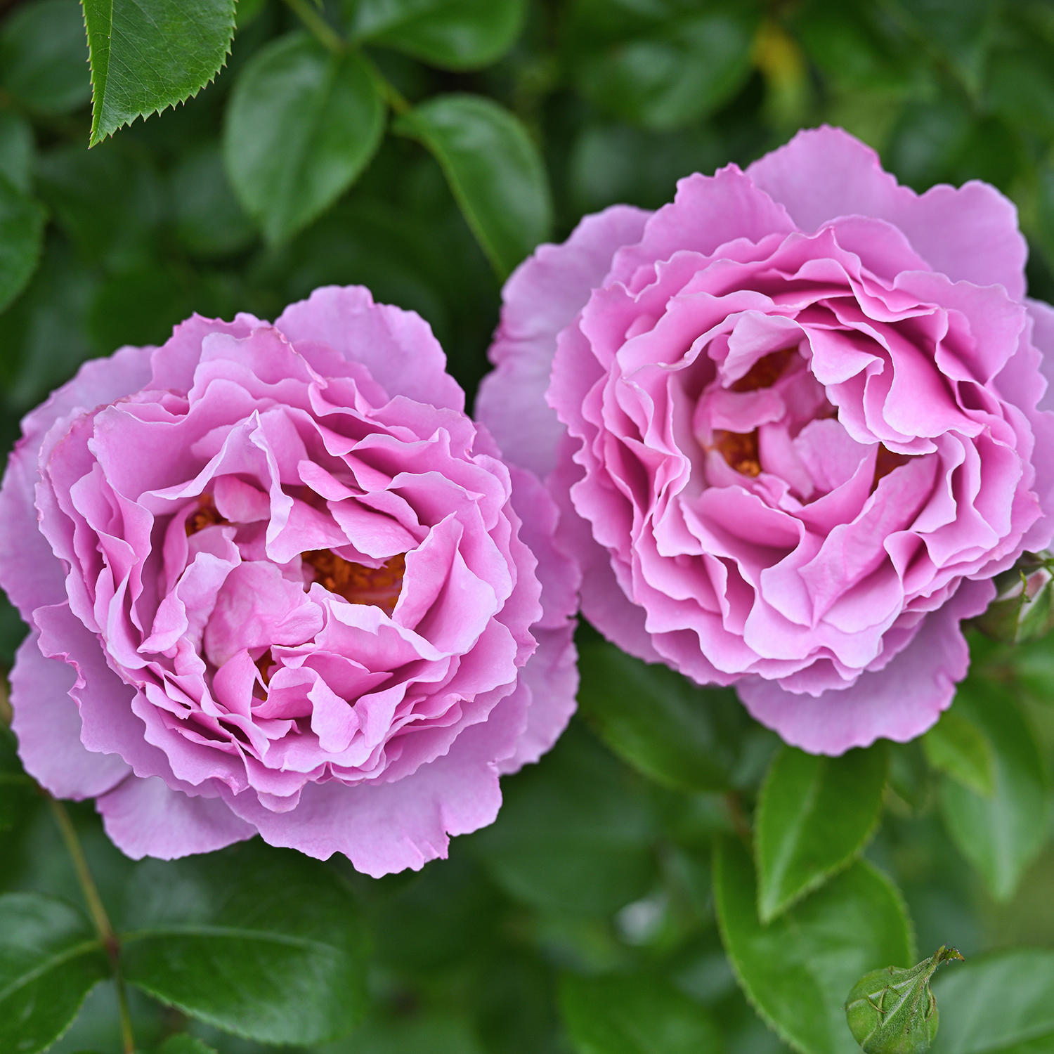 Сорт, обладающий всеми качествами превосходного розового куста. Цветки диаметром 9 см, густомахровые (более 60 лепестков), чашевидные, великолепного тёмно-розового цвета с лиловым оттенком. Лепестки с резными зубчатыми краями. Аромат сильный, с цветочными нотами. Цветение повторное, до осени. Листва очень красивая, тёмно-зелёная, глянцевая, высокоустойчивая к заболеваниям.