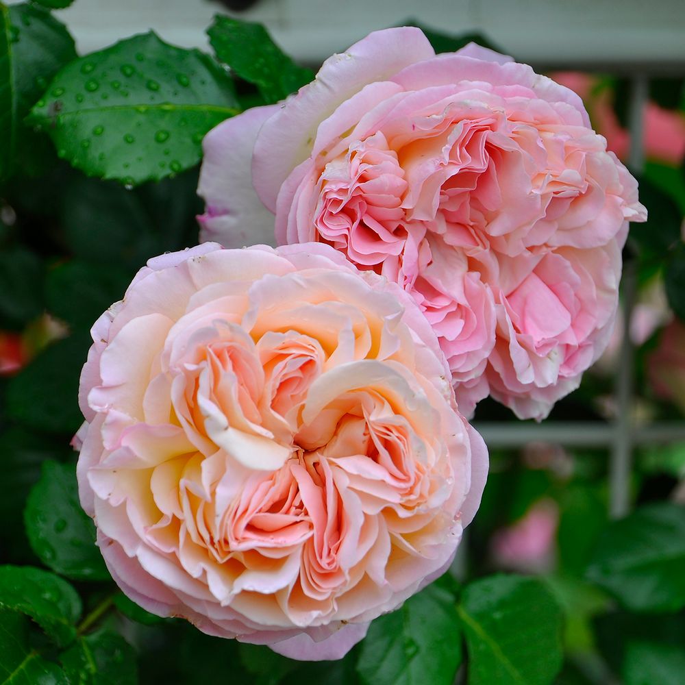 Нежный цвет, пастельные оттенки от прозрачно-белого до бледно-розового. Приятный пряно-цветочный аромат. Махровые чашевидные цветки, нежно-зеленая листва. Гибкие побеги с редкими шипами.