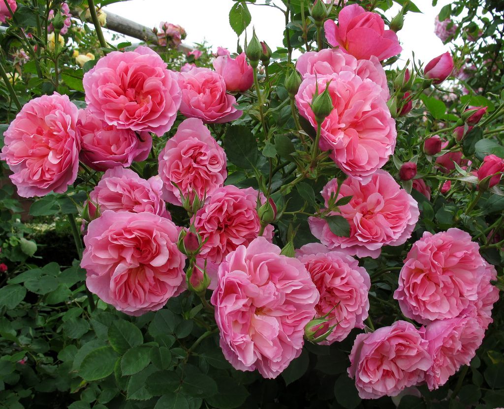 Это очень крупный кустарник, который, в отличие от других кустарников такого размера, цветет очень обильно и продолжительно в течение всего лета. Этой своей особенностью сорт обязан своим необычным происхождением. Очень крепкий и устойчивый к заболеваниям. Хотя каждый отдельный цветок не слишком изысканный, но обладает своей прелестью. Hyde Hall превосходно подойдет для заднего плана бордера или как солитер на лужайке, - или даже, благодаря своему превосходному здоровью, устойчивости и надежности, в качестве привлекательной живой изгороди. Запах легкий, фруктовый.