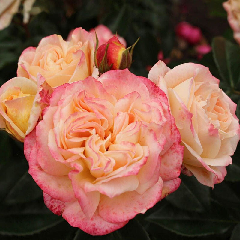 Конкорд (Concorde ®) - это не классическая роза, а скорее грандифлора, цветы которой всегда появляются в небольших соцветиях. Цветки густомахровые, шарообразные и имеют ностальгическую форму исторических роз, только с таким оттенком и игрой цвета ,которую вы напрасно бы искали в этой группе роз. Распустившиеся цветы кремово-желтого цвета , затем этот цвет остается в центре цветка, лепестки в то же время приобретают розово красноватый оттенок, который становится тем интенсивнее, чем сильнее светит солнце. Аромат лёгкий. Куст энергичного пропорционального роста, пряморослый, высотой 80 см и шириной 50 см. Цветение повторное, несколькими волнами за сезон. Растение с глянцевой, очень здоровой листвой, крепкие стебли которого также можно превосходно использовать в качестве срезанной розы. Листва с хорошей устойчивостью к чёрной пятнистости и мучнистой росе . В саду сорт лучше всего подходит для небольших групп, но также не кажется потерянным и в солитерной посадке.