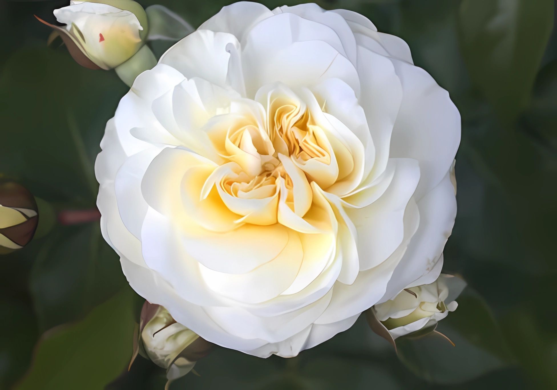 Кремовые, с оттенками нежно-желтого, квартированные, средне-махровые (около 25 лепестков) цветки появляются в небольших соцветиях на компактном кусте со светло-зеленой листвой. Сорт может использоваться для контейнерной посадки.