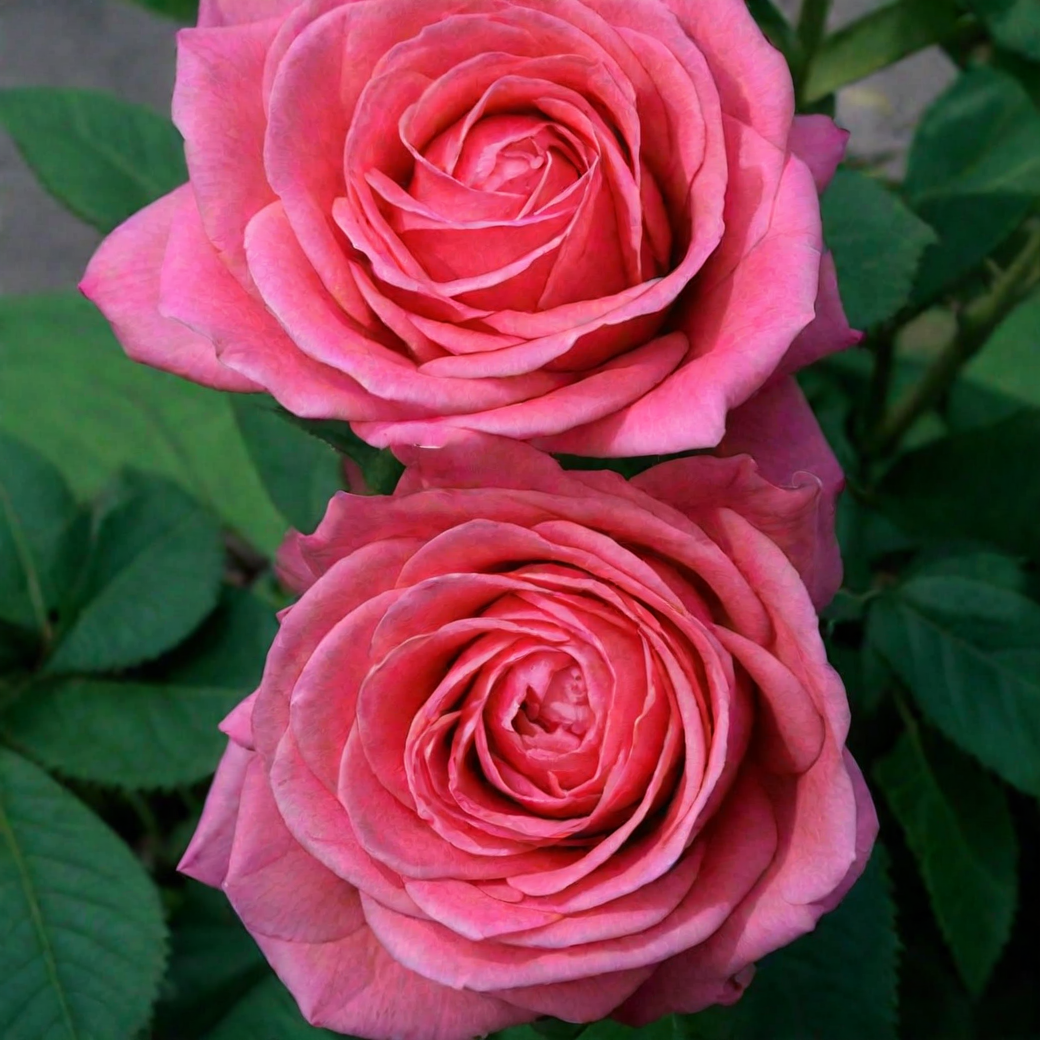 Крупные, махровые цветки (26-40 лепестков), глубокого розового цвета с красивой спиральной укладкой лепестков, на побегах главным образом одиночные. Цветет в течение всего сезона. Сильный аромат старинных роз.