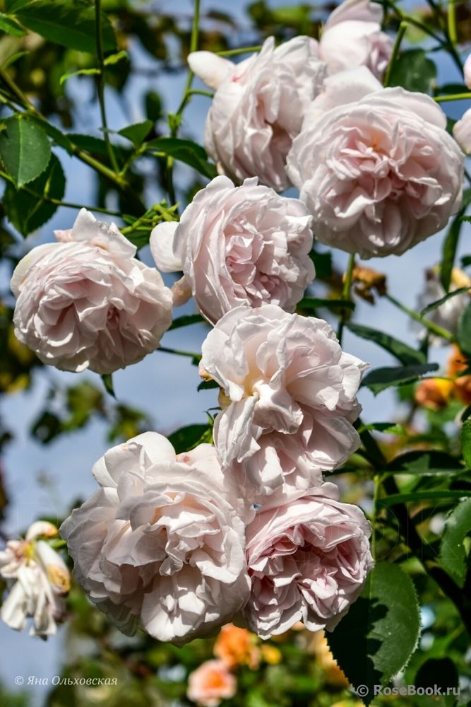Нежно-розовые махровые цветки старинной формы в соцветиях. Сильный аромат мирры. Листва темно-зеленая, устойчивая к заболеваниям. Сорт может использоваться в качестве плетистого растения.