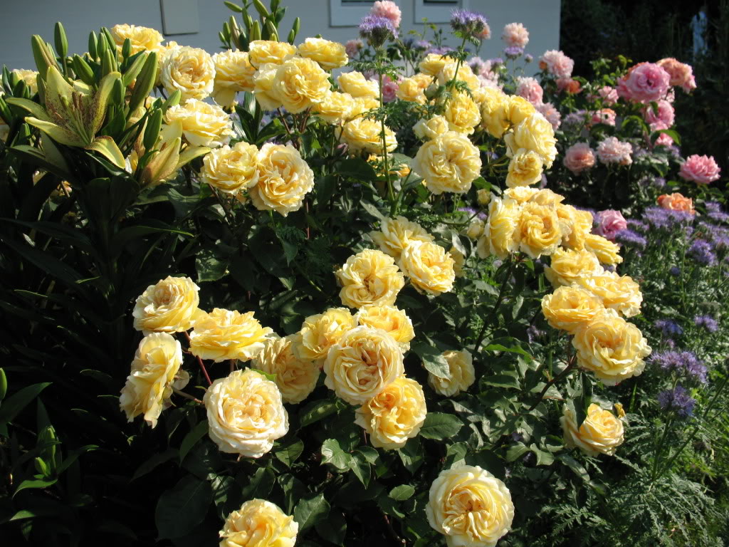 Красивая роза для романтических садов. Махровые, нежно-желтые, слабо душистые цветки имеют форму старинных роз. Сорт лучше себя чувствует в теплом и сухом климате. (VER)